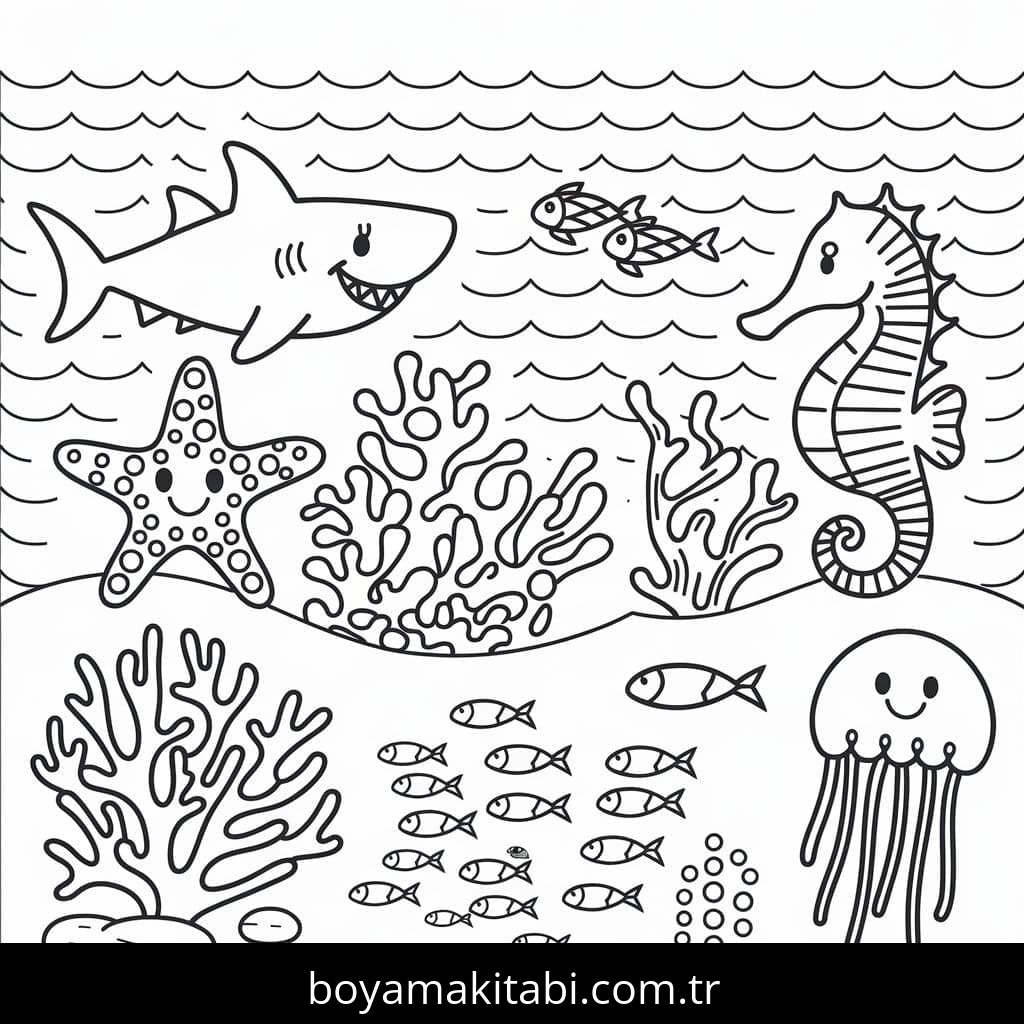 Okyanus temalı bu boyama sayfası çocuklar için eğlenceli etkinlik ve el becerilerini geliştirir bir etkinlik sunar. Ücretsiz olarak indirip yazdırabilir, evde keyifli bir boyama zamanı oluşturabilirsiniz.