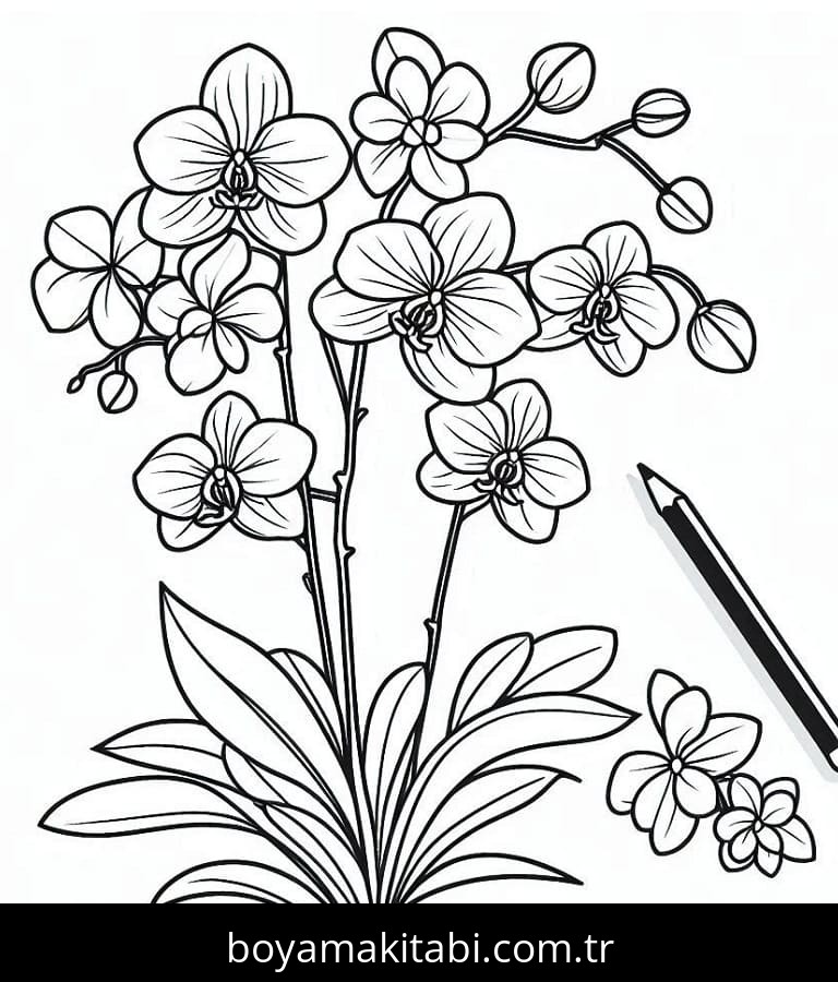 Orkide temalı bu boyama sayfası çocuklar için basit çizim ve kolay boyama bir etkinlik sunar. Ücretsiz olarak indirip yazdırabilir, evde keyifli bir boyama zamanı oluşturabilirsiniz.