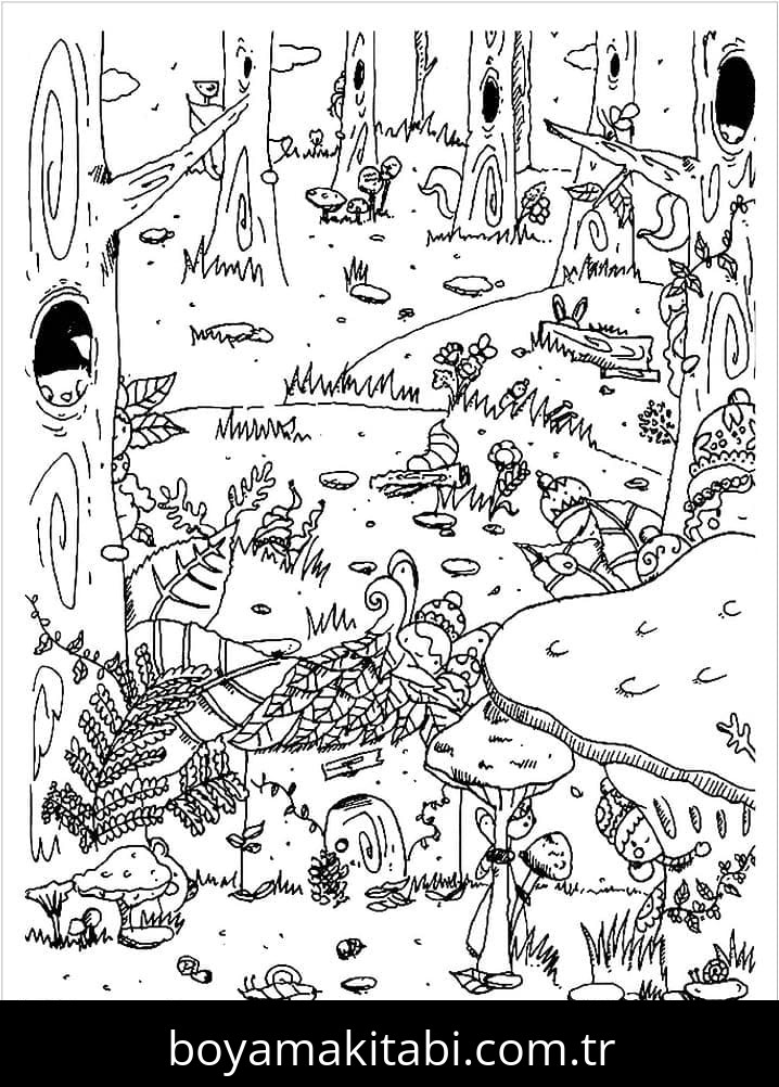 Orman temalı bu boyama sayfası çocuklar için yaratıcılık ve eğlenceli etkinlik bir etkinlik sunar. Ücretsiz olarak indirip yazdırabilir, evde keyifli bir boyama zamanı oluşturabilirsiniz.