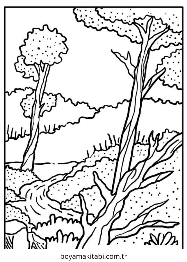 Orman temalı bu boyama sayfası çocuklar için çizgi film temalı ve basit çizim bir etkinlik sunar. Ücretsiz olarak indirip yazdırabilir, evde keyifli bir boyama zamanı oluşturabilirsiniz.