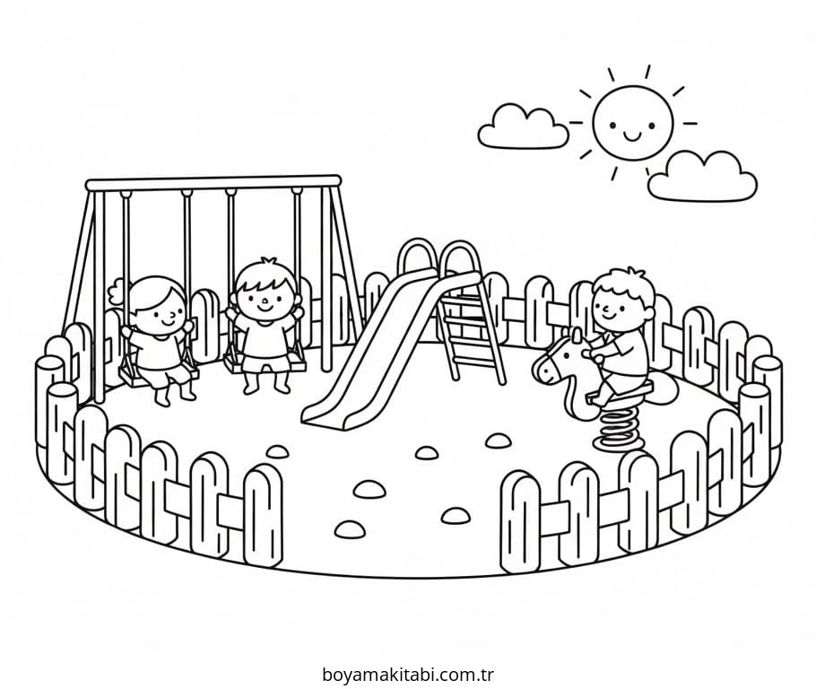 Oyun Parkı temalı bu boyama sayfası çocuklar için çocuk aktivitesi ve PDF indir bir etkinlik sunar. Ücretsiz olarak indirip yazdırabilir, evde keyifli bir boyama zamanı oluşturabilirsiniz.