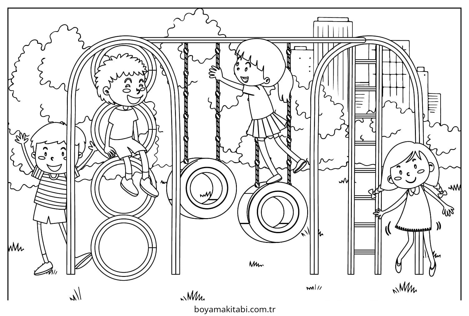Oyun Parkı temalı bu boyama sayfası çocuklar için kolay boyama ve eğitici aktivite bir etkinlik sunar. Ücretsiz olarak indirip yazdırabilir, evde keyifli bir boyama zamanı oluşturabilirsiniz.