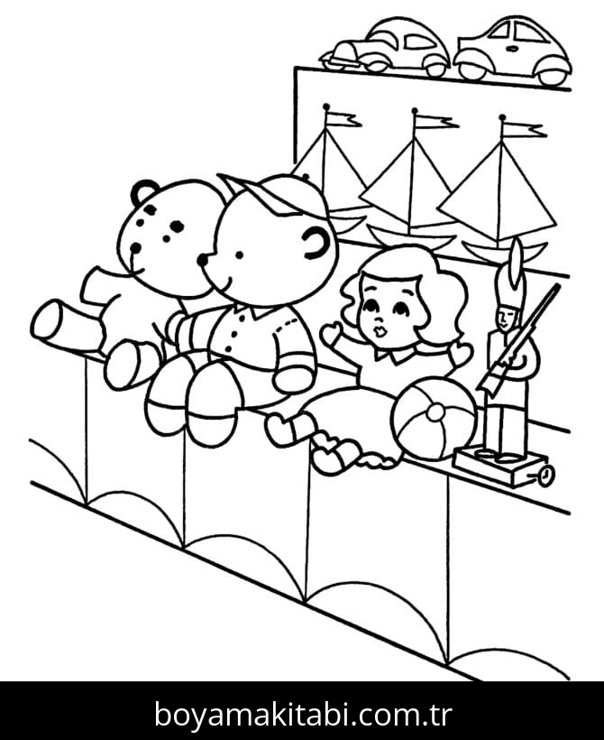 Oyuncak temalı bu boyama sayfası çocuklar için basit çizim ve kolay boyama bir etkinlik sunar. Ücretsiz olarak indirip yazdırabilir, evde keyifli bir boyama zamanı oluşturabilirsiniz.