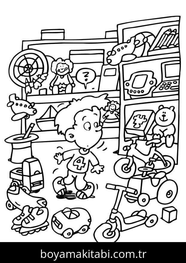 Oyuncak temalı bu boyama sayfası çocuklar için el becerilerini geliştirir ve boyama çalışması bir etkinlik sunar. Ücretsiz olarak indirip yazdırabilir, evde keyifli bir boyama zamanı oluşturabilirsiniz.