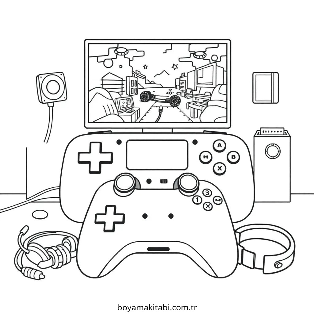 Oyunlar temalı bu boyama sayfası çocuklar için basit çizim ve kolay boyama bir etkinlik sunar. Ücretsiz olarak indirip yazdırabilir, evde keyifli bir boyama zamanı oluşturabilirsiniz.