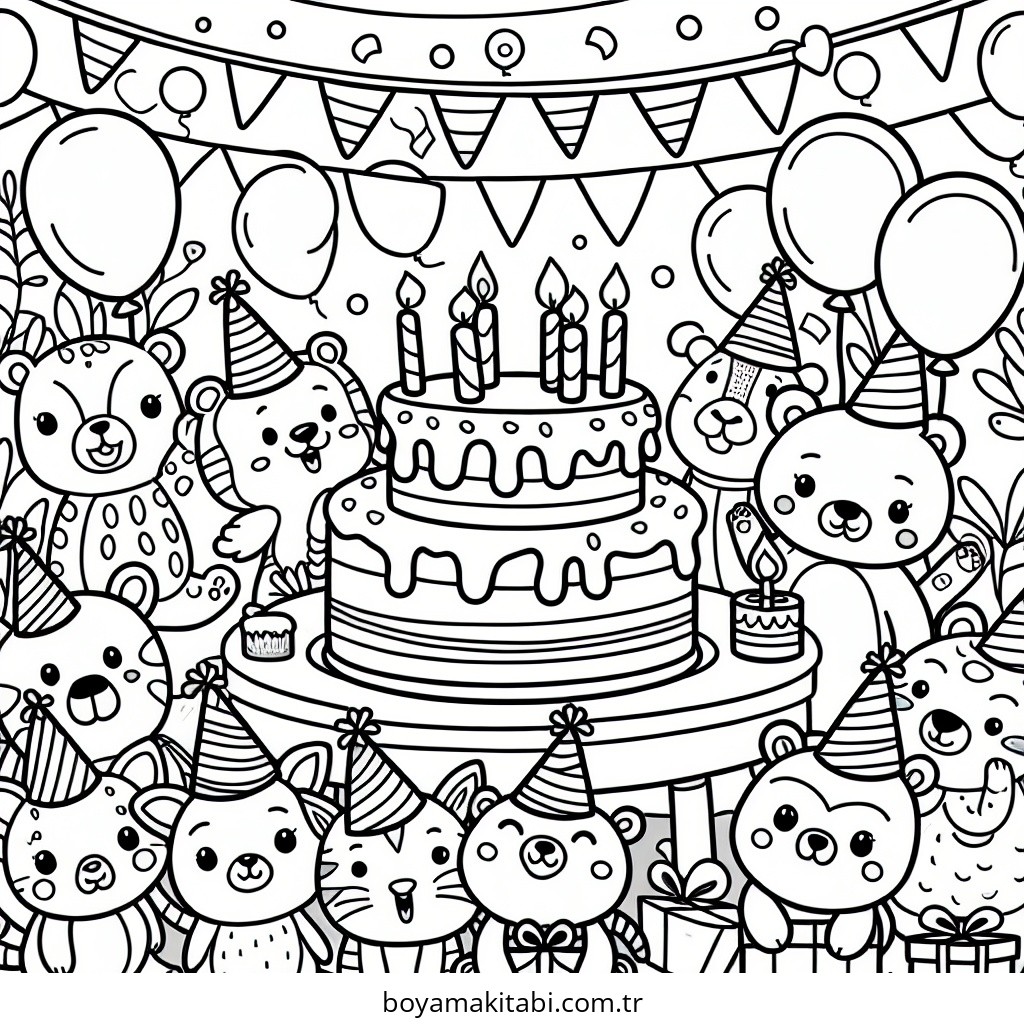 Parti temalı bu boyama sayfası çocuklar için sevimli karakter ve sanatsal çalışma bir etkinlik sunar. Ücretsiz olarak indirip yazdırabilir, evde keyifli bir boyama zamanı oluşturabilirsiniz.