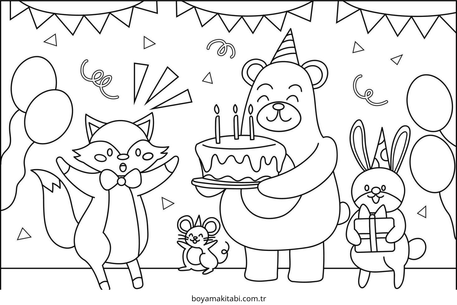 Parti temalı bu boyama sayfası çocuklar için çocuk aktivitesi ve PDF indir bir etkinlik sunar. Ücretsiz olarak indirip yazdırabilir, evde keyifli bir boyama zamanı oluşturabilirsiniz.