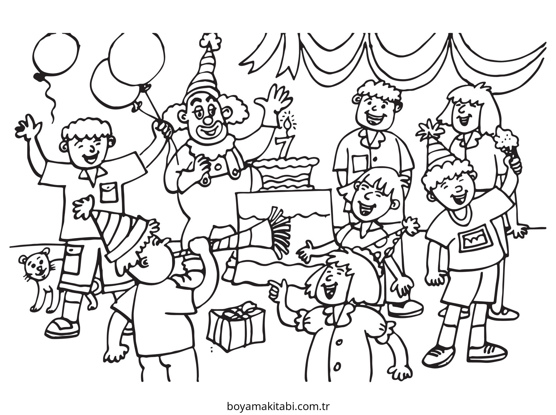 Parti temalı bu boyama sayfası çocuklar için eğlenceli etkinlik ve el becerilerini geliştirir bir etkinlik sunar. Ücretsiz olarak indirip yazdırabilir, evde keyifli bir boyama zamanı oluşturabilirsiniz.