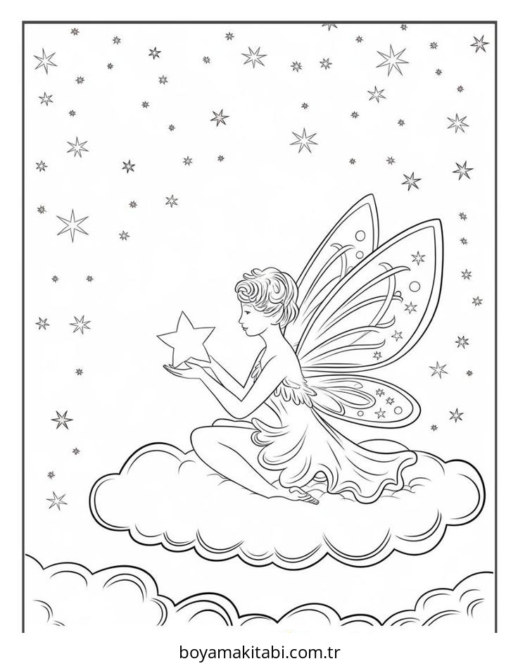 Peri temalı bu boyama sayfası çocuklar için el becerilerini geliştirir ve boyama çalışması bir etkinlik sunar. Ücretsiz olarak indirip yazdırabilir, evde keyifli bir boyama zamanı oluşturabilirsiniz.