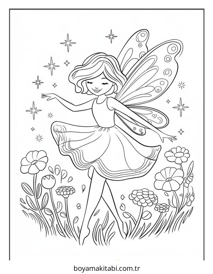 Peri temalı bu boyama sayfası çocuklar için sanatsal çalışma ve çocuklar için bir etkinlik sunar. Ücretsiz olarak indirip yazdırabilir, evde keyifli bir boyama zamanı oluşturabilirsiniz.