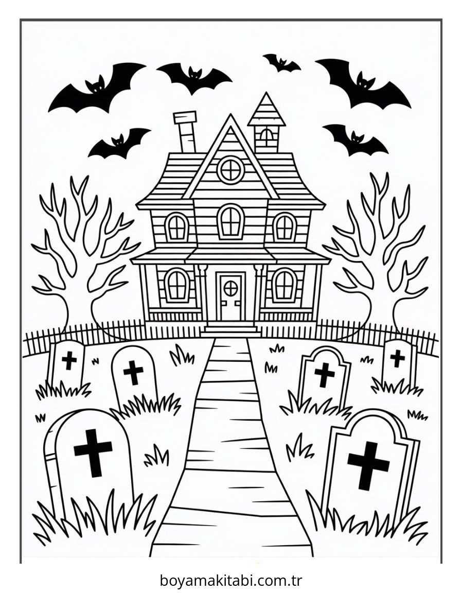 Perili Ev temalı bu boyama sayfası çocuklar için ücretsiz yazdır ve boyama etkinliği bir etkinlik sunar. Ücretsiz olarak indirip yazdırabilir, evde keyifli bir boyama zamanı oluşturabilirsiniz.