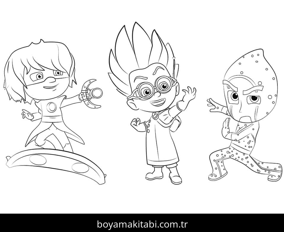 Pijamaskeliler temalı bu boyama sayfası çocuklar için keyifli zaman ve renkli çizimler bir etkinlik sunar. Ücretsiz olarak indirip yazdırabilir, evde keyifli bir boyama zamanı oluşturabilirsiniz.