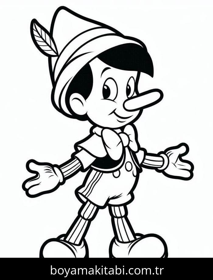 Pinokyo temalı bu boyama sayfası çocuklar için eğitici aktivite ve yaratıcılık bir etkinlik sunar. Ücretsiz olarak indirip yazdırabilir, evde keyifli bir boyama zamanı oluşturabilirsiniz.
