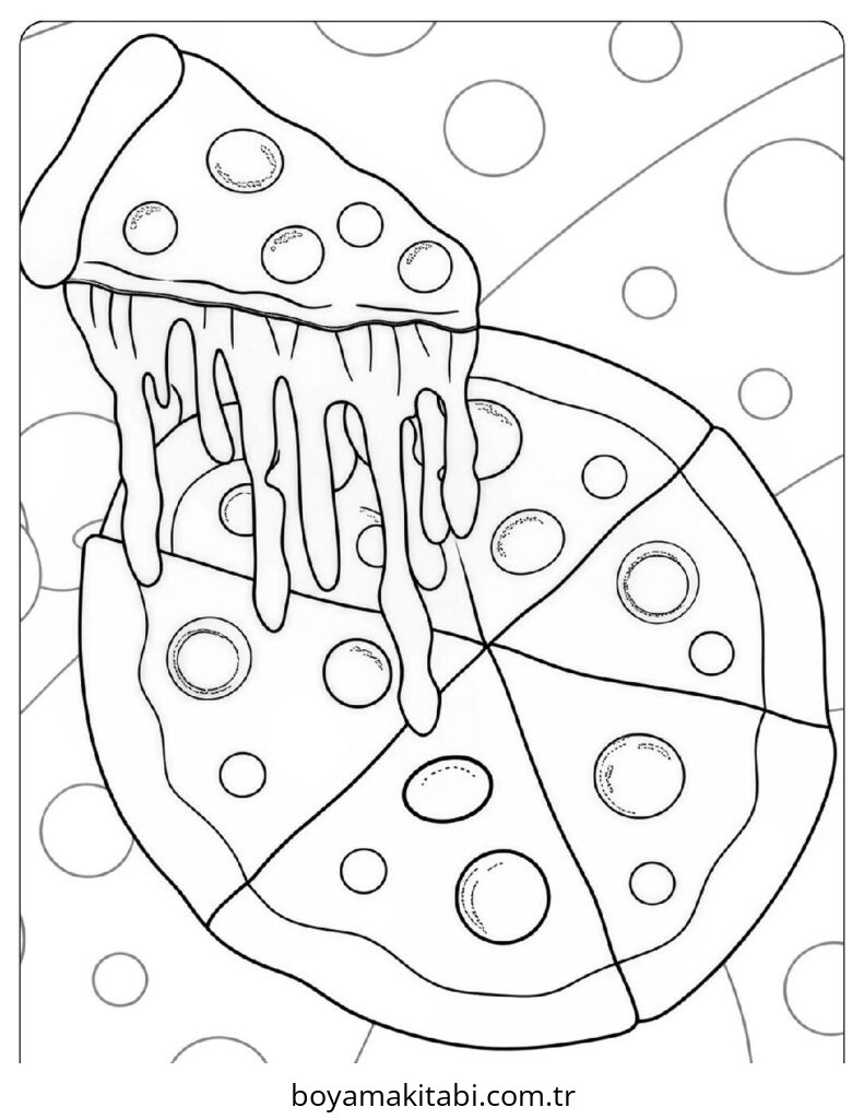 Pizza temalı bu boyama sayfası çocuklar için basit çizim ve kolay boyama bir etkinlik sunar. Ücretsiz olarak indirip yazdırabilir, evde keyifli bir boyama zamanı oluşturabilirsiniz.