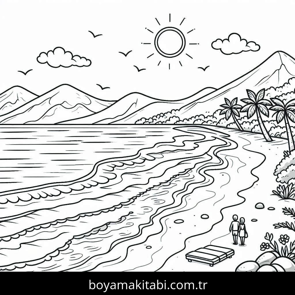 Plaj temalı bu boyama sayfası çocuklar için çizgi film temalı ve basit çizim bir etkinlik sunar. Ücretsiz olarak indirip yazdırabilir, evde keyifli bir boyama zamanı oluşturabilirsiniz.