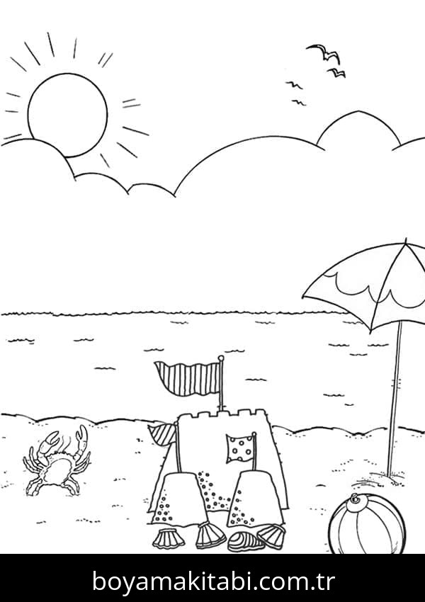 Plaj temalı bu boyama sayfası çocuklar için eğitici aktivite ve yaratıcılık bir etkinlik sunar. Ücretsiz olarak indirip yazdırabilir, evde keyifli bir boyama zamanı oluşturabilirsiniz.