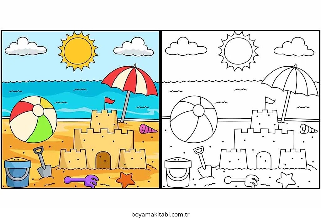 Plaj temalı bu boyama sayfası çocuklar için çocuk aktivitesi ve PDF indir bir etkinlik sunar. Ücretsiz olarak indirip yazdırabilir, evde keyifli bir boyama zamanı oluşturabilirsiniz.