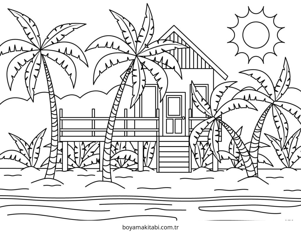 Plaj temalı bu boyama sayfası çocuklar için boyama etkinliği ve çocuk aktivitesi bir etkinlik sunar. Ücretsiz olarak indirip yazdırabilir, evde keyifli bir boyama zamanı oluşturabilirsiniz.