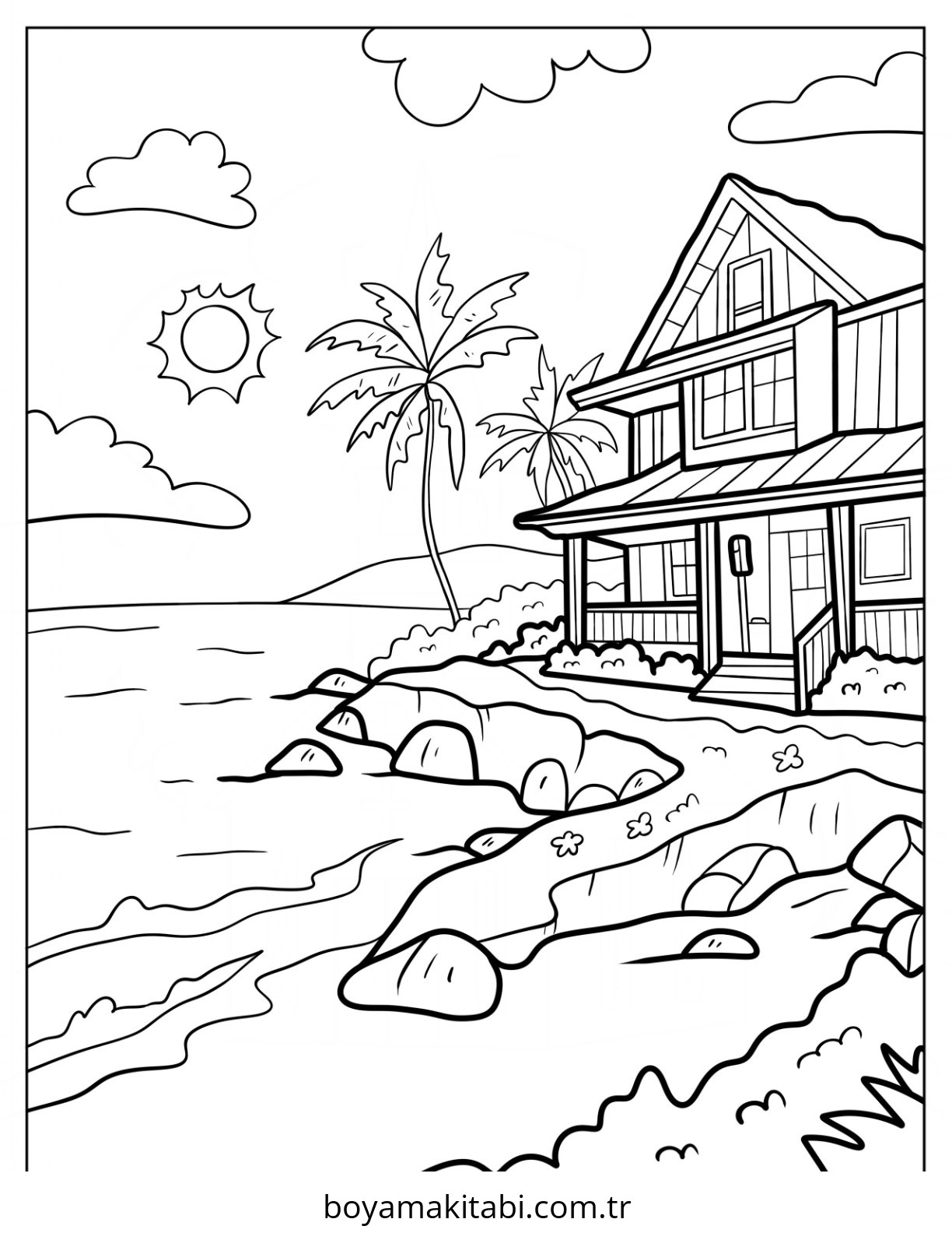 Plaj temalı bu boyama sayfası çocuklar için el becerilerini geliştirir ve boyama çalışması bir etkinlik sunar. Ücretsiz olarak indirip yazdırabilir, evde keyifli bir boyama zamanı oluşturabilirsiniz.