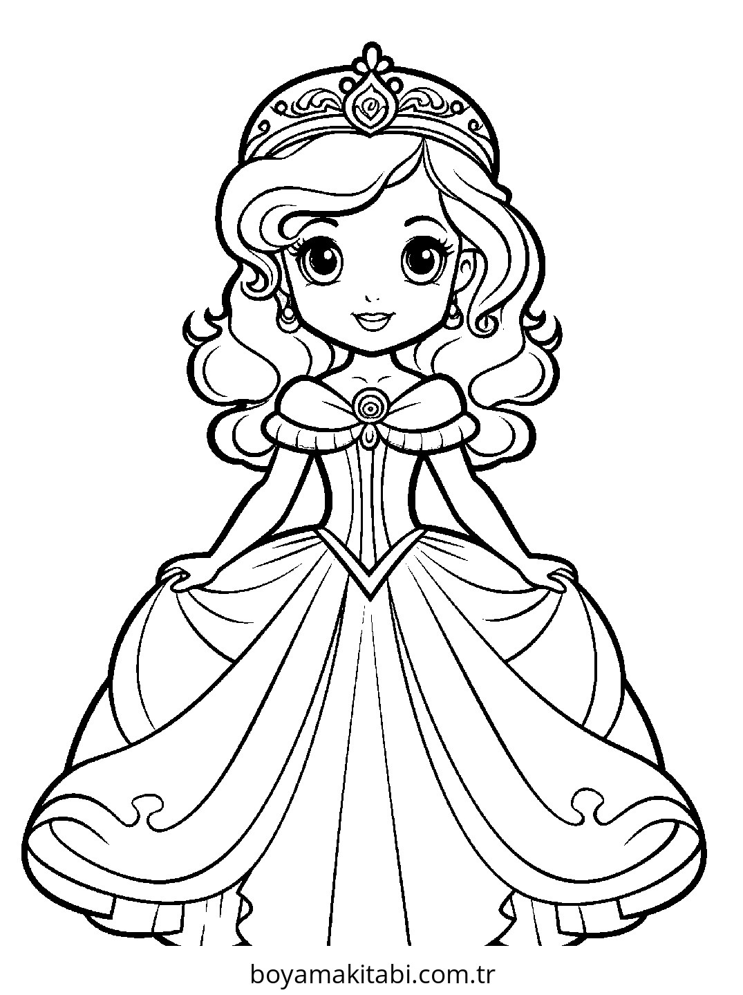 Prenses temalı bu boyama sayfası çocuklar için basit çizim ve kolay boyama bir etkinlik sunar. Ücretsiz olarak indirip yazdırabilir, evde keyifli bir boyama zamanı oluşturabilirsiniz.