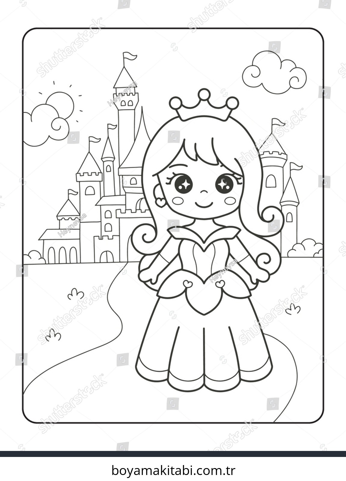 Prenses temalı bu boyama sayfası çocuklar için el becerilerini geliştirir ve boyama çalışması bir etkinlik sunar. Ücretsiz olarak indirip yazdırabilir, evde keyifli bir boyama zamanı oluşturabilirsiniz.