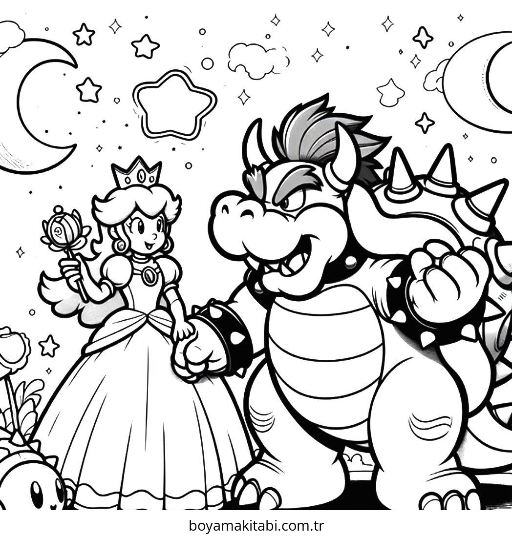 Prenses Peach temalı bu boyama sayfası çocuklar için renkli çizimler ve okul öncesi bir etkinlik sunar. Ücretsiz olarak indirip yazdırabilir, evde keyifli bir boyama zamanı oluşturabilirsiniz.