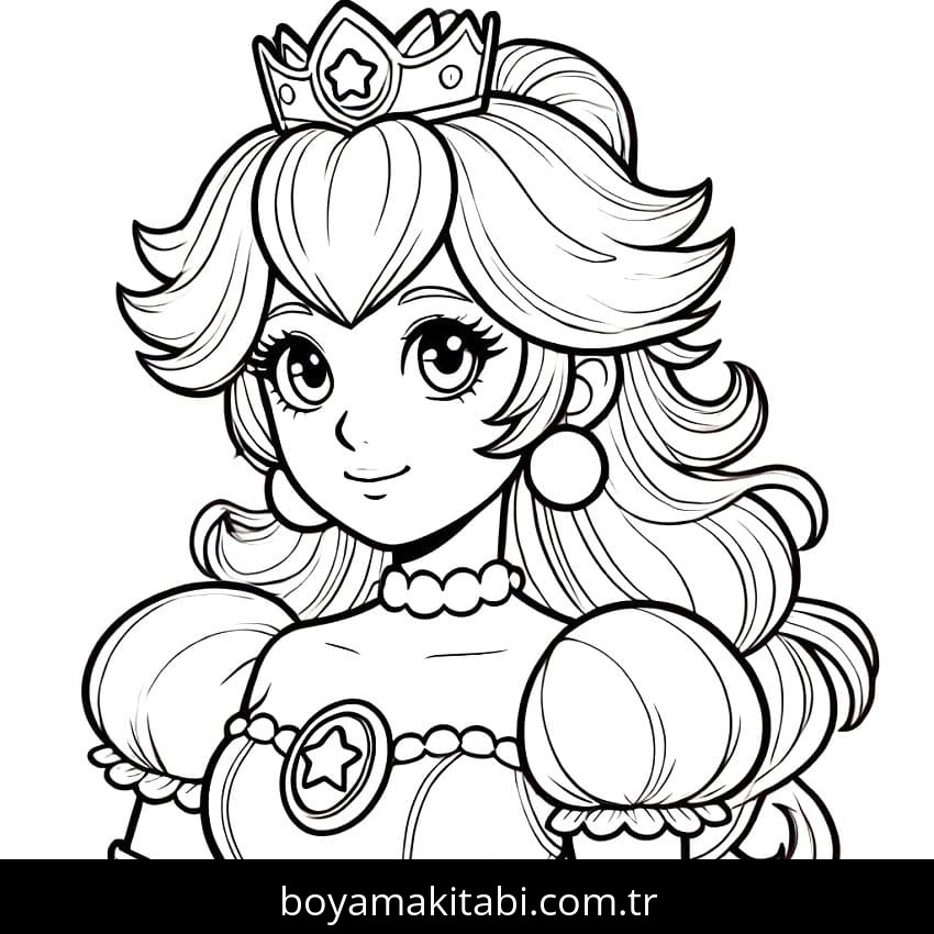 Prenses Peach temalı bu boyama sayfası çocuklar için çocuklar için ve çizgi film temalı bir etkinlik sunar. Ücretsiz olarak indirip yazdırabilir, evde keyifli bir boyama zamanı oluşturabilirsiniz.