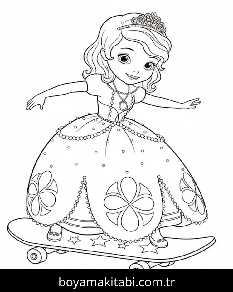 Prenses Sofia temalı bu boyama sayfası çocuklar için el becerilerini geliştirir ve boyama çalışması bir etkinlik sunar. Ücretsiz olarak indirip yazdırabilir, evde keyifli bir boyama zamanı oluşturabilirsiniz.