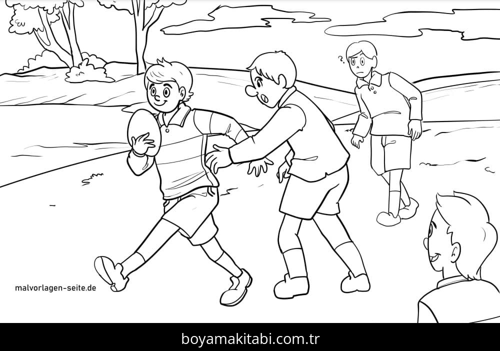 Ragbi temalı bu boyama sayfası çocuklar için sanatsal çalışma ve çocuklar için bir etkinlik sunar. Ücretsiz olarak indirip yazdırabilir, evde keyifli bir boyama zamanı oluşturabilirsiniz.