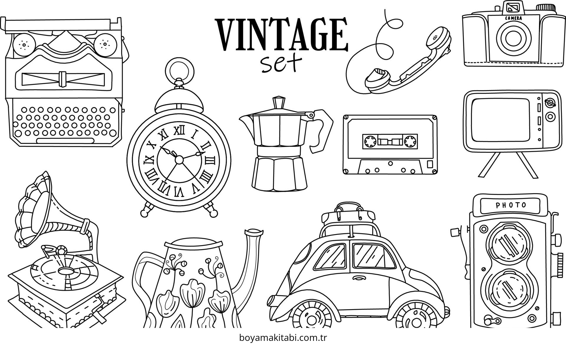 Retro temalı bu boyama sayfası çocuklar için boyama çalışması ve yaratıcılığı geliştirir bir etkinlik sunar. Ücretsiz olarak indirip yazdırabilir, evde keyifli bir boyama zamanı oluşturabilirsiniz.