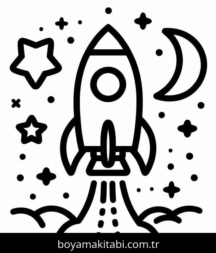 Roket temalı bu boyama sayfası çocuklar için eğitici aktivite ve yaratıcılık bir etkinlik sunar. Ücretsiz olarak indirip yazdırabilir, evde keyifli bir boyama zamanı oluşturabilirsiniz.