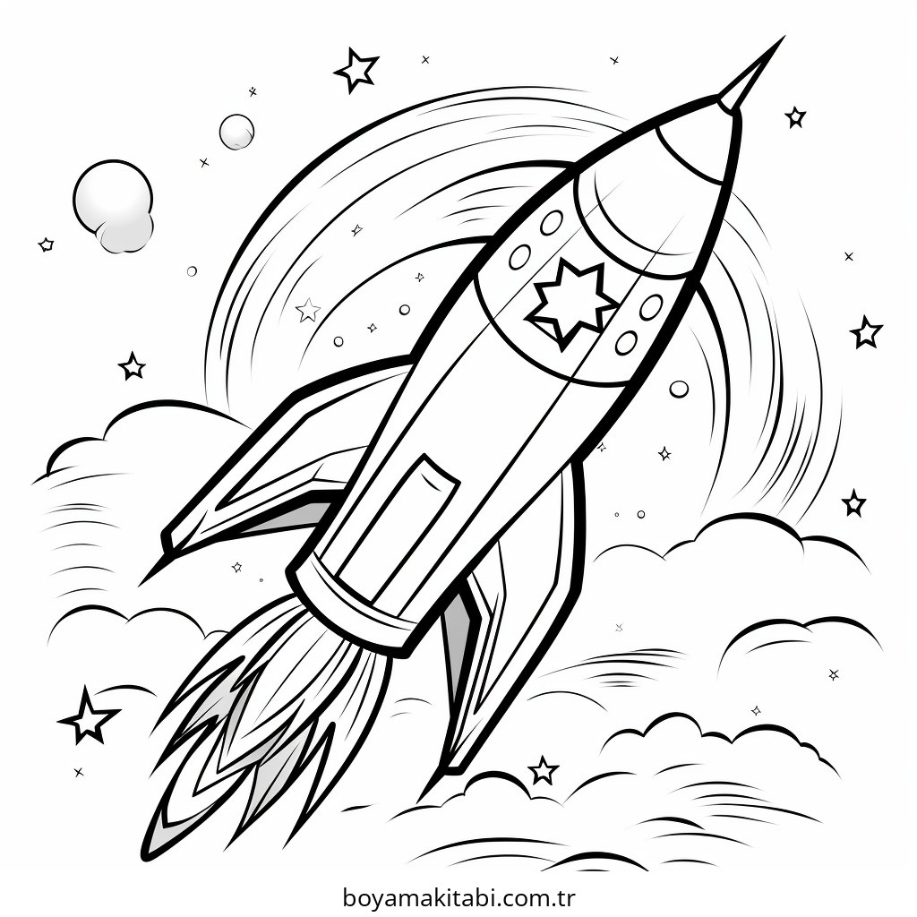 Roket temalı bu boyama sayfası çocuklar için evde etkinlik ve ücretsiz yazdır bir etkinlik sunar. Ücretsiz olarak indirip yazdırabilir, evde keyifli bir boyama zamanı oluşturabilirsiniz.