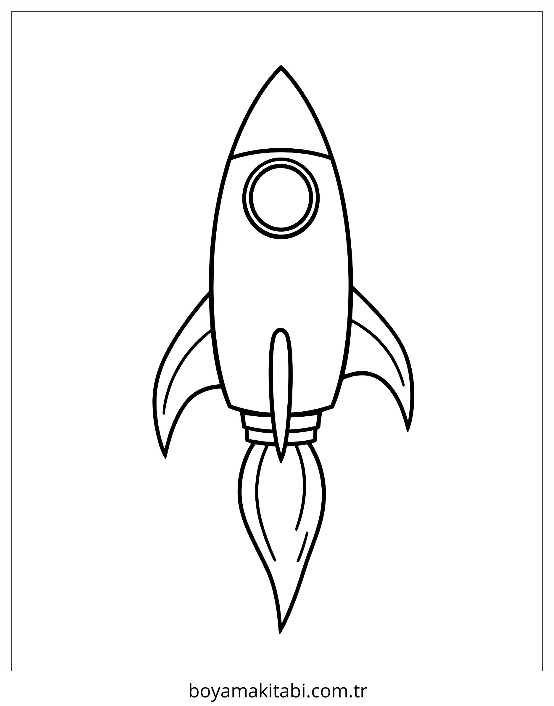 Roket temalı bu boyama sayfası çocuklar için çizgi film temalı ve basit çizim bir etkinlik sunar. Ücretsiz olarak indirip yazdırabilir, evde keyifli bir boyama zamanı oluşturabilirsiniz.