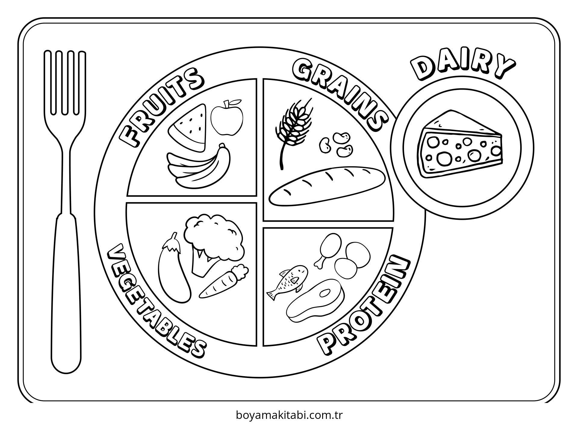 Sağlıklı Yiyecekler temalı bu boyama sayfası çocuklar için keyifli zaman ve renkli çizimler bir etkinlik sunar. Ücretsiz olarak indirip yazdırabilir, evde keyifli bir boyama zamanı oluşturabilirsiniz.