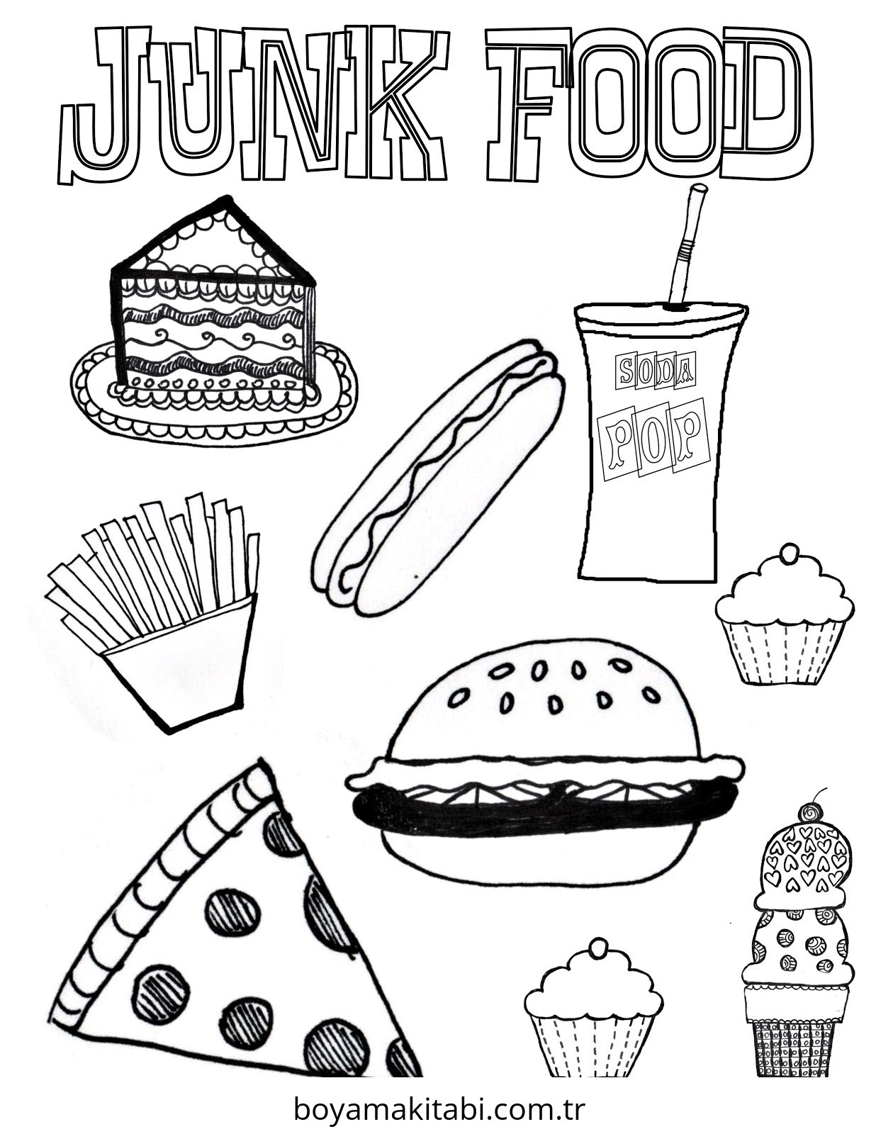 Sağlıklı Yiyecekler temalı bu boyama sayfası çocuklar için çizgi film temalı ve basit çizim bir etkinlik sunar. Ücretsiz olarak indirip yazdırabilir, evde keyifli bir boyama zamanı oluşturabilirsiniz.