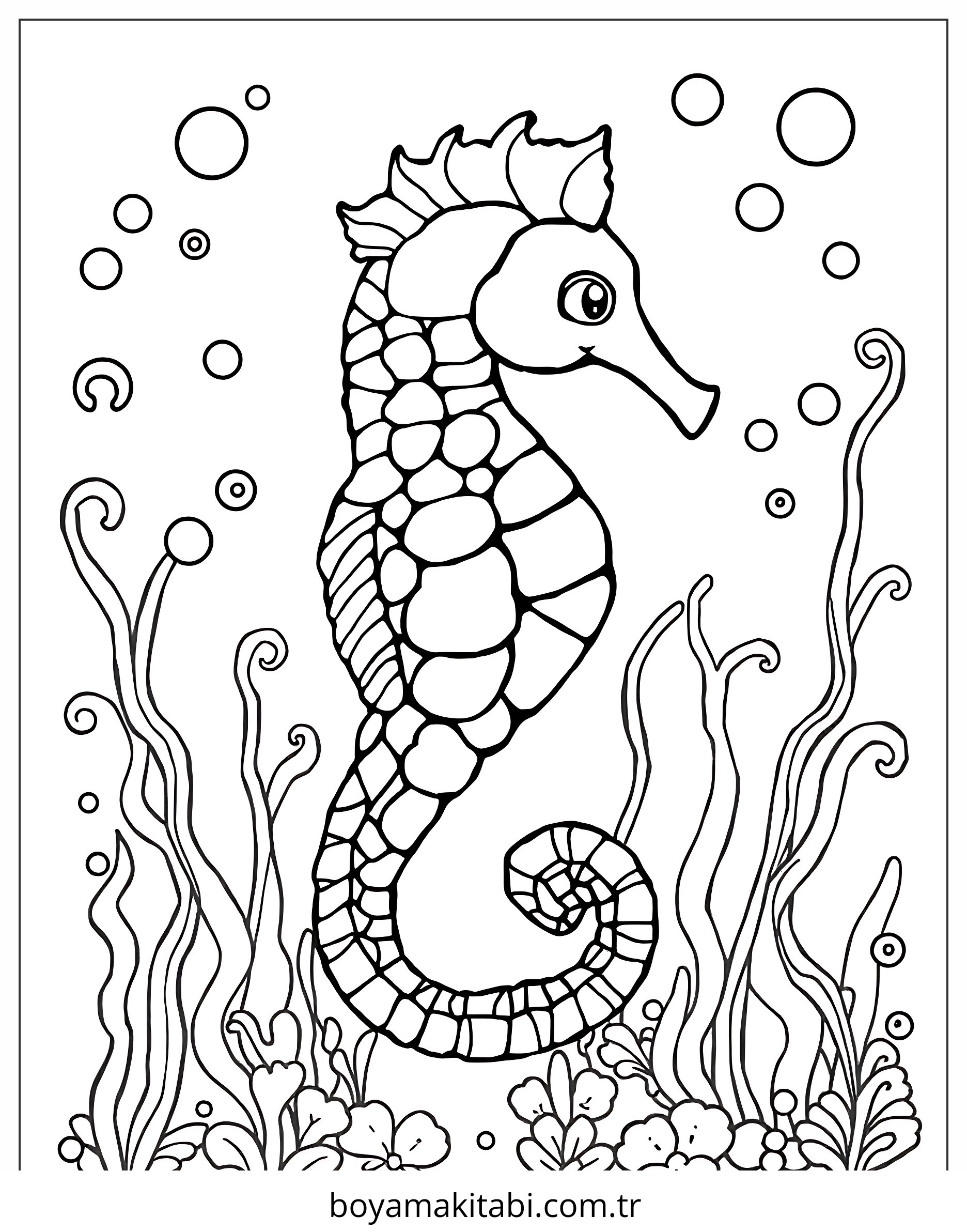 Seahorse temalı bu boyama sayfası çocuklar için boyama etkinliği ve çocuk aktivitesi bir etkinlik sunar. Ücretsiz olarak indirip yazdırabilir, evde keyifli bir boyama zamanı oluşturabilirsiniz.