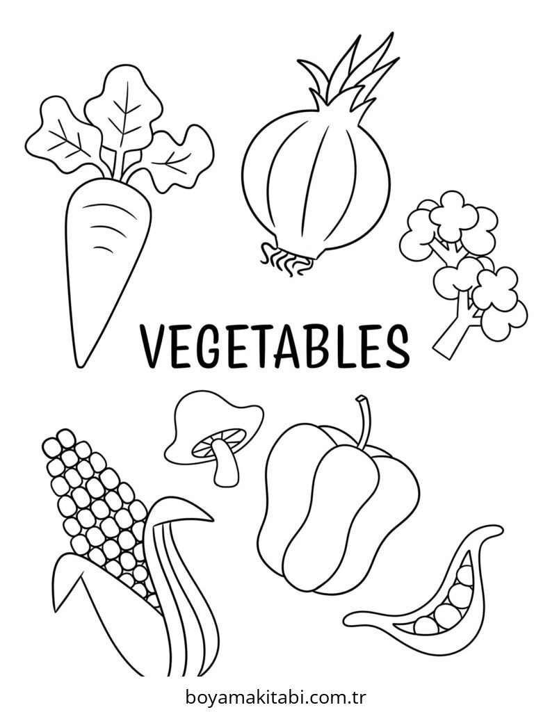Sebze temalı bu boyama sayfası çocuklar için basit çizim ve kolay boyama bir etkinlik sunar. Ücretsiz olarak indirip yazdırabilir, evde keyifli bir boyama zamanı oluşturabilirsiniz.