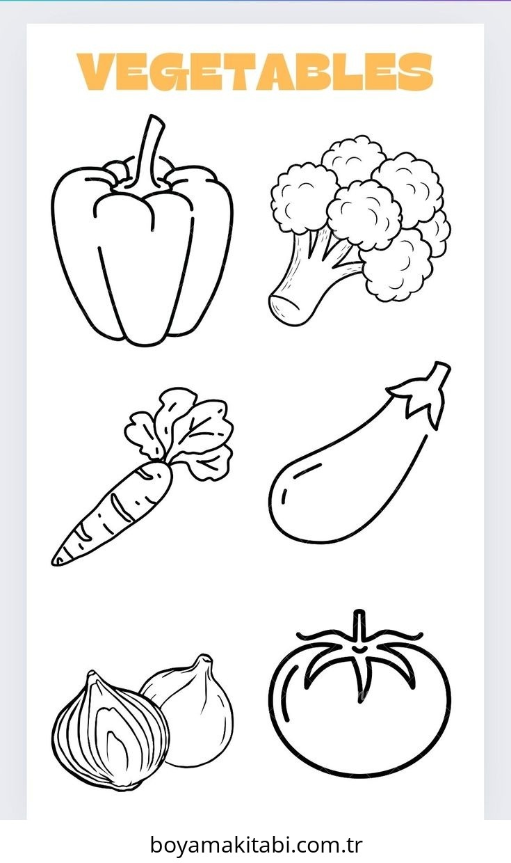 Sebze temalı bu boyama sayfası çocuklar için boyama çalışması ve yaratıcılığı geliştirir bir etkinlik sunar. Ücretsiz olarak indirip yazdırabilir, evde keyifli bir boyama zamanı oluşturabilirsiniz.