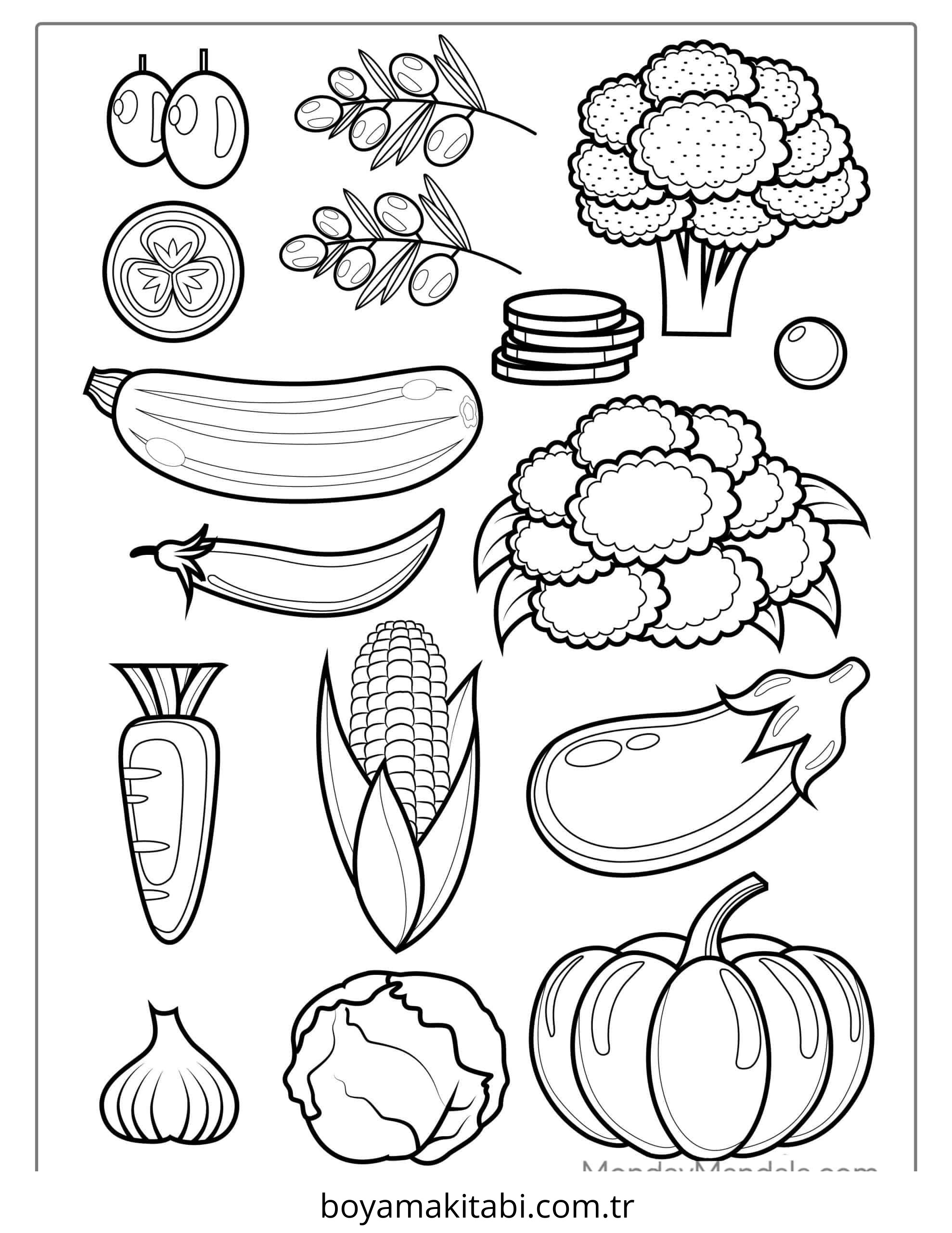 Sebze temalı bu boyama sayfası çocuklar için çizgi film temalı ve basit çizim bir etkinlik sunar. Ücretsiz olarak indirip yazdırabilir, evde keyifli bir boyama zamanı oluşturabilirsiniz.