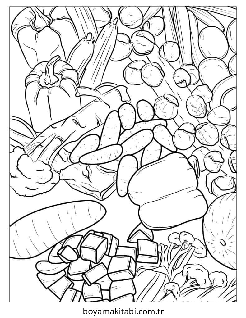 Sebze temalı bu boyama sayfası çocuklar için PDF indir ve sevimli karakter bir etkinlik sunar. Ücretsiz olarak indirip yazdırabilir, evde keyifli bir boyama zamanı oluşturabilirsiniz.