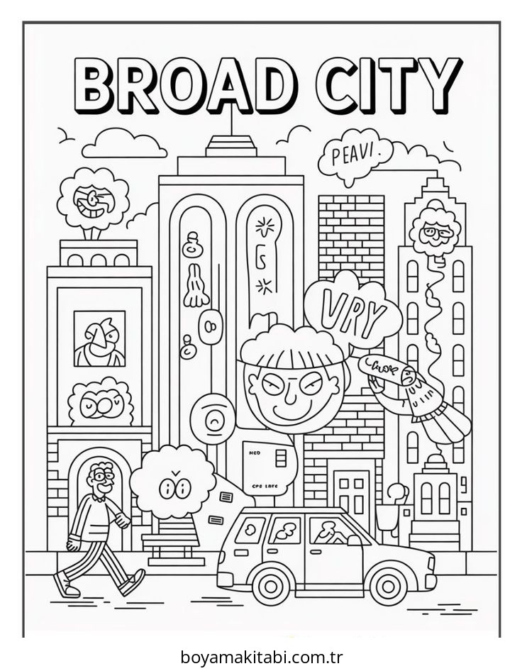 Şehir temalı bu boyama sayfası çocuklar için basit çizim ve kolay boyama bir etkinlik sunar. Ücretsiz olarak indirip yazdırabilir, evde keyifli bir boyama zamanı oluşturabilirsiniz.