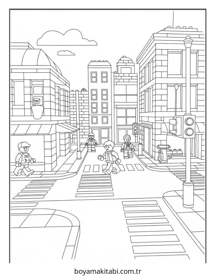 Şehir temalı bu boyama sayfası çocuklar için okul öncesi ve evde etkinlik bir etkinlik sunar. Ücretsiz olarak indirip yazdırabilir, evde keyifli bir boyama zamanı oluşturabilirsiniz.