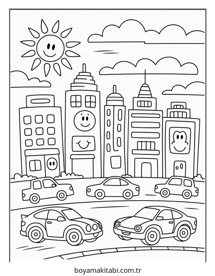 Şehir temalı bu boyama sayfası çocuklar için boyama etkinliği ve çocuk aktivitesi bir etkinlik sunar. Ücretsiz olarak indirip yazdırabilir, evde keyifli bir boyama zamanı oluşturabilirsiniz.