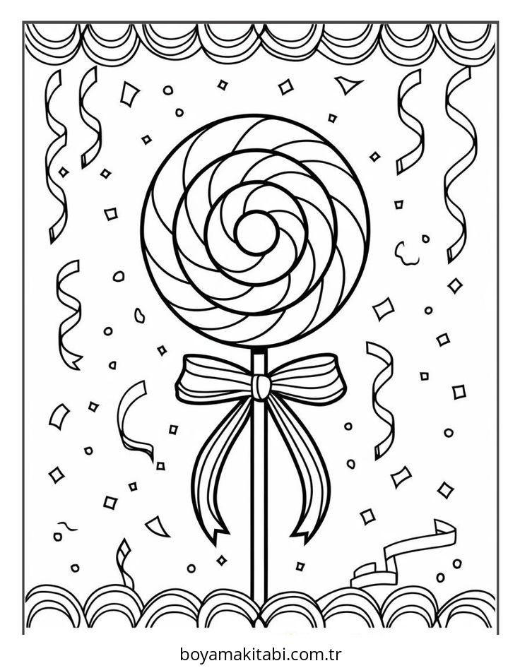 Şeker temalı bu boyama sayfası çocuklar için eğitici aktivite ve yaratıcılık bir etkinlik sunar. Ücretsiz olarak indirip yazdırabilir, evde keyifli bir boyama zamanı oluşturabilirsiniz.