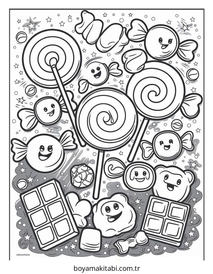 Şeker temalı bu boyama sayfası çocuklar için çocuk aktivitesi ve PDF indir bir etkinlik sunar. Ücretsiz olarak indirip yazdırabilir, evde keyifli bir boyama zamanı oluşturabilirsiniz.