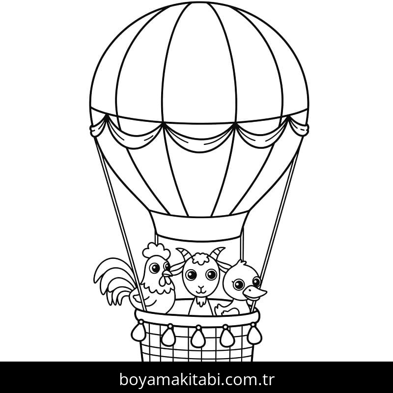 Sıcak Hava Balonu temalı bu boyama sayfası çocuklar için el becerilerini geliştirir ve boyama çalışması bir etkinlik sunar. Ücretsiz olarak indirip yazdırabilir, evde keyifli bir boyama zamanı oluşturabilirsiniz.