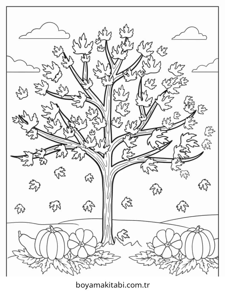 Sonbahar temalı bu boyama sayfası çocuklar için yaratıcılık ve eğlenceli etkinlik bir etkinlik sunar. Ücretsiz olarak indirip yazdırabilir, evde keyifli bir boyama zamanı oluşturabilirsiniz.