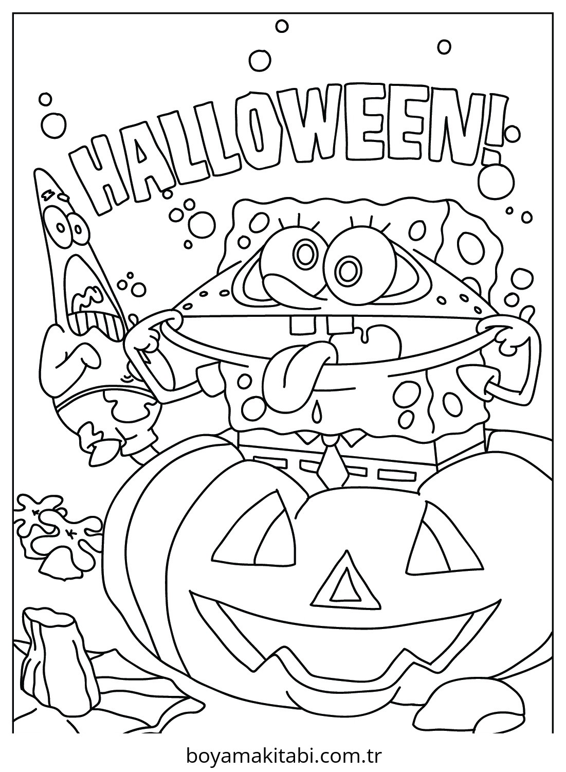 Spongebob temalı bu boyama sayfası çocuklar için çocuklar için ve çizgi film temalı bir etkinlik sunar. Ücretsiz olarak indirip yazdırabilir, evde keyifli bir boyama zamanı oluşturabilirsiniz.