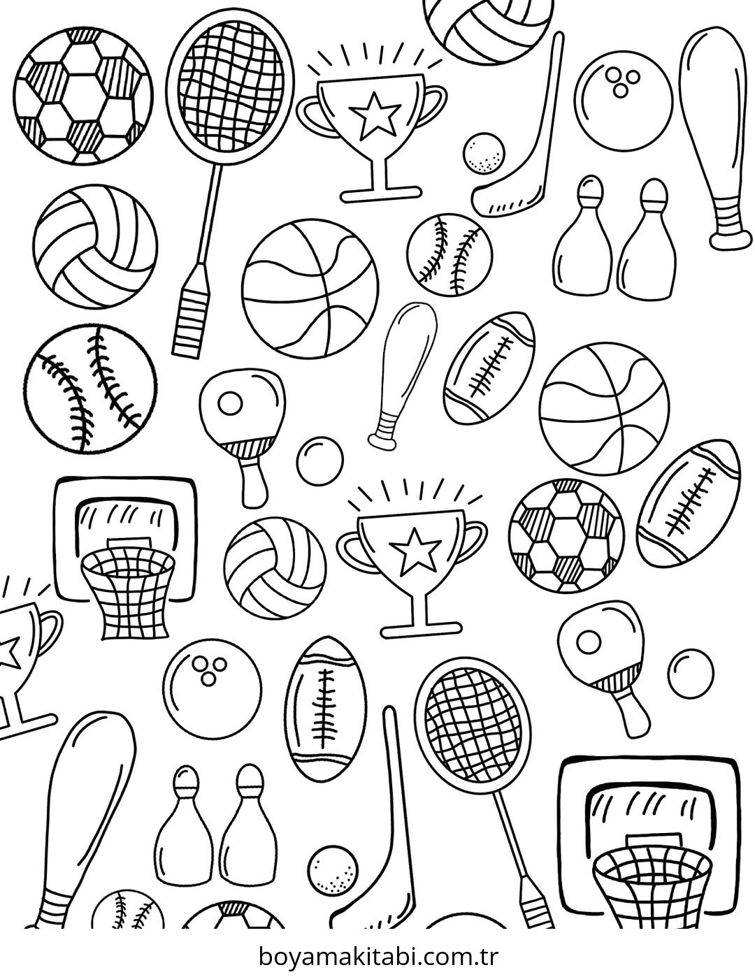 Spor temalı bu boyama sayfası çocuklar için el becerilerini geliştirir ve boyama çalışması bir etkinlik sunar. Ücretsiz olarak indirip yazdırabilir, evde keyifli bir boyama zamanı oluşturabilirsiniz.