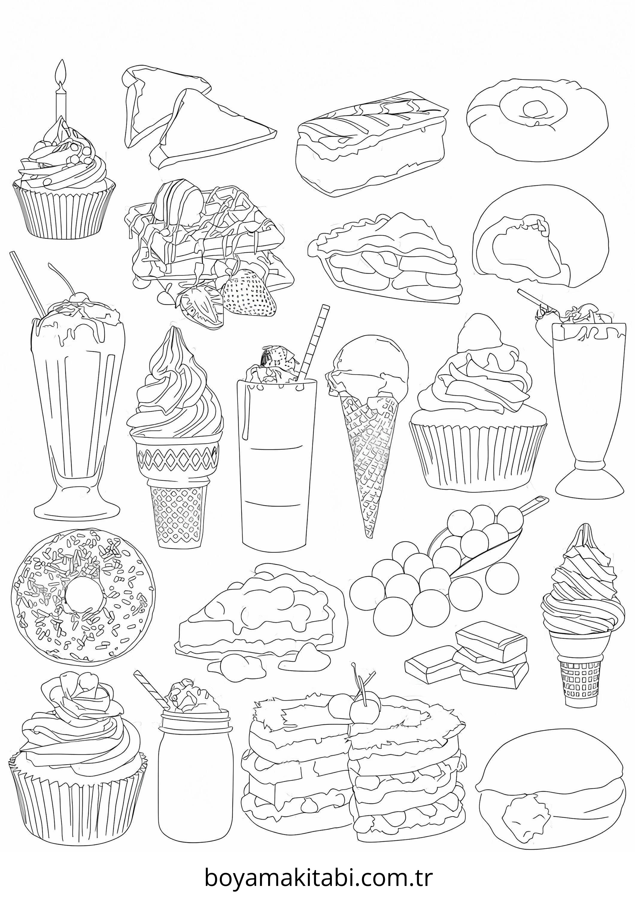 Tatlı temalı bu boyama sayfası çocuklar için çocuklar için ve çizgi film temalı bir etkinlik sunar. Ücretsiz olarak indirip yazdırabilir, evde keyifli bir boyama zamanı oluşturabilirsiniz.